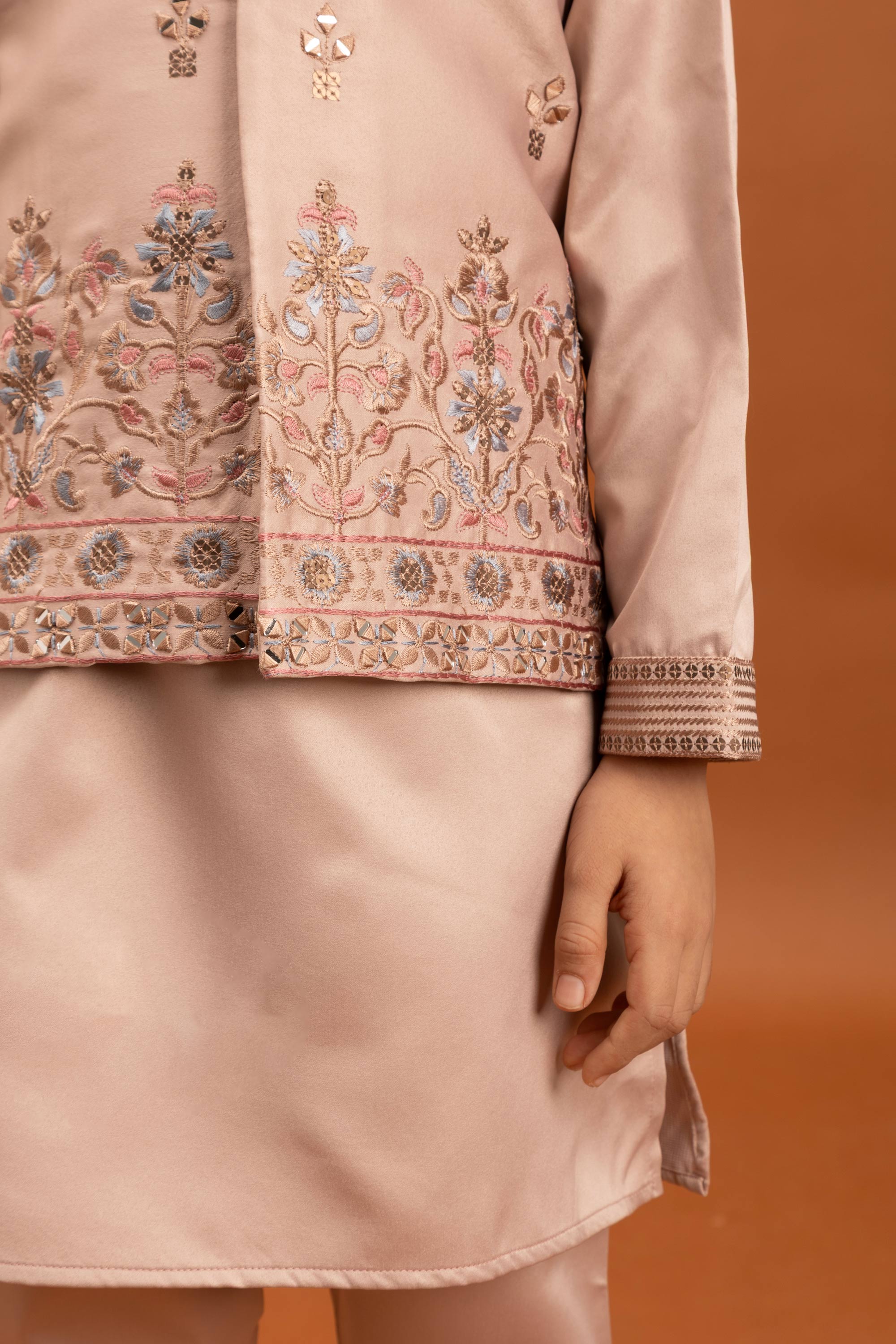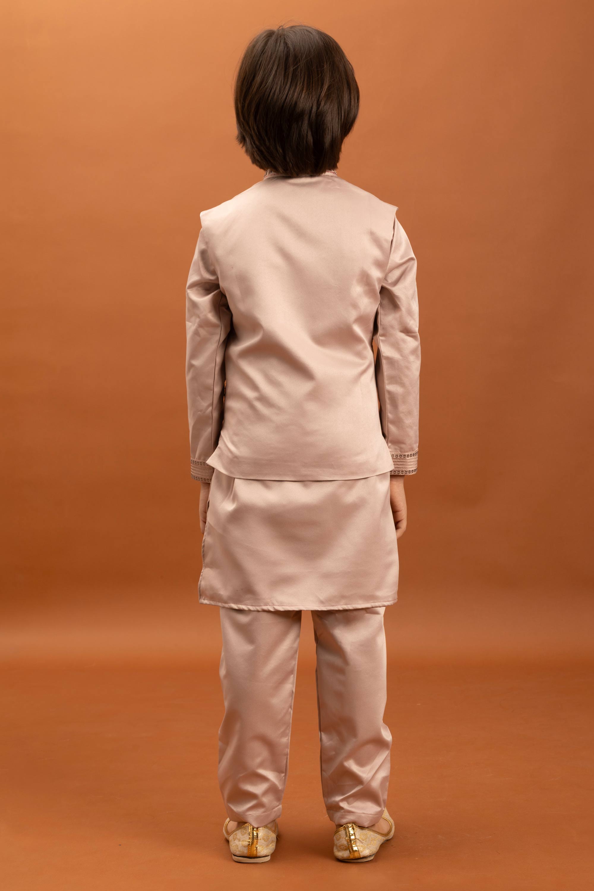 Satin Peach Traditional Wear Boys Fancy Readymade Kurta Pyjama With Jacket