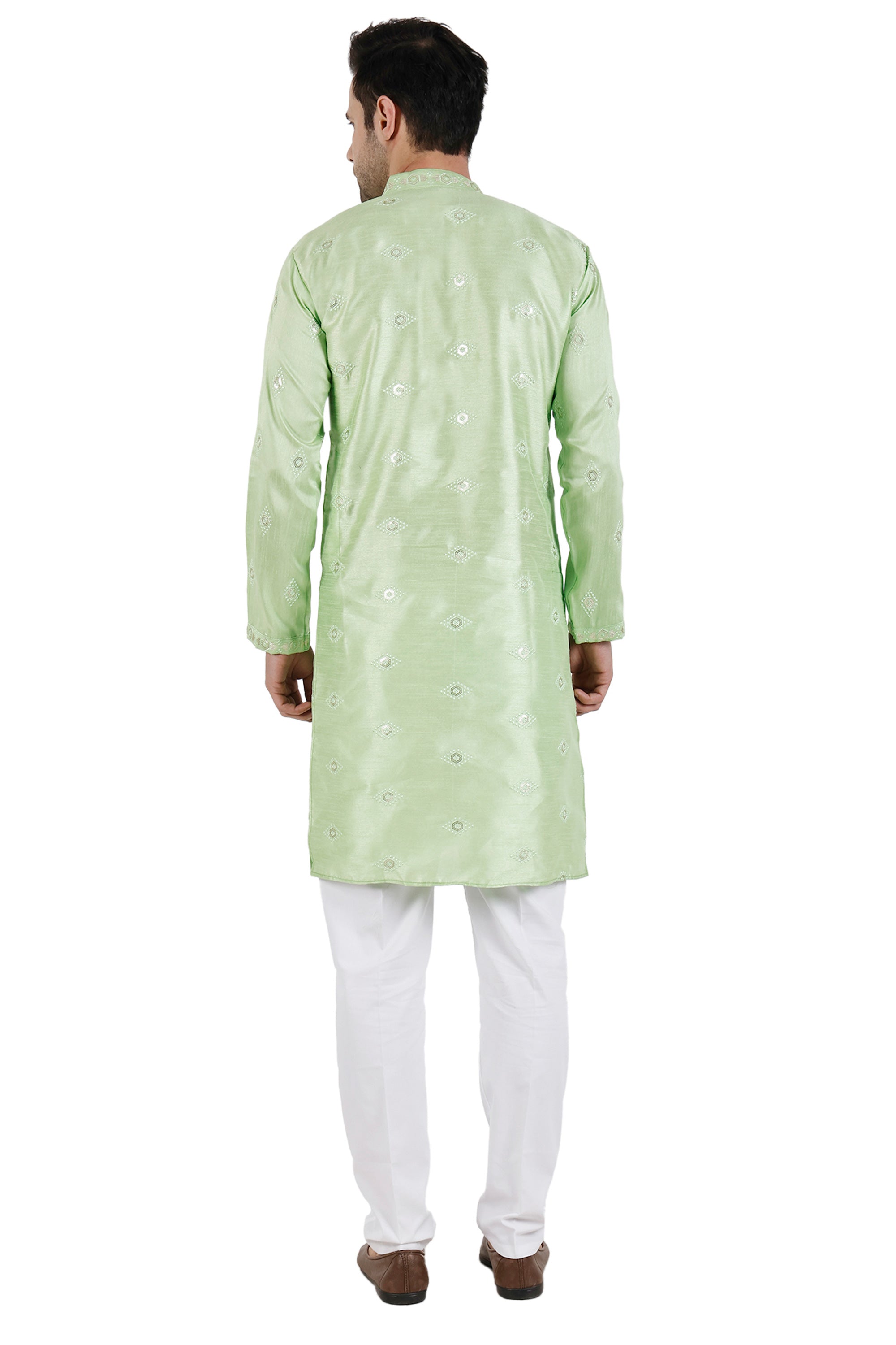 Sea Green Art Silk Fabric Sangeet Wear Trendy Readymade Kurta Pyjama