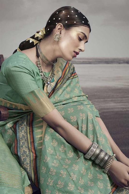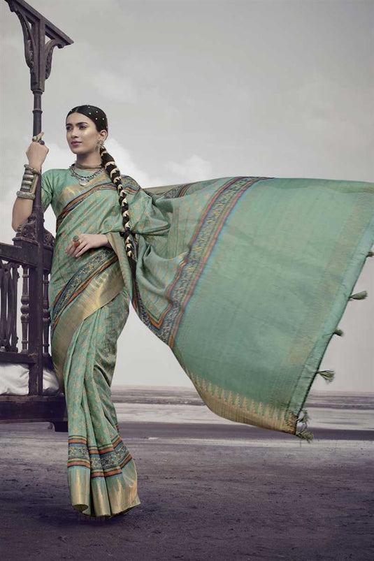 Sea Green Color Art Silk Fabric Festive Look Stunning Printed Saree