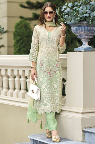 Sea Green Color Embroidered Readymade Designer Straight Cut Salwar Suit In Organza Fabric