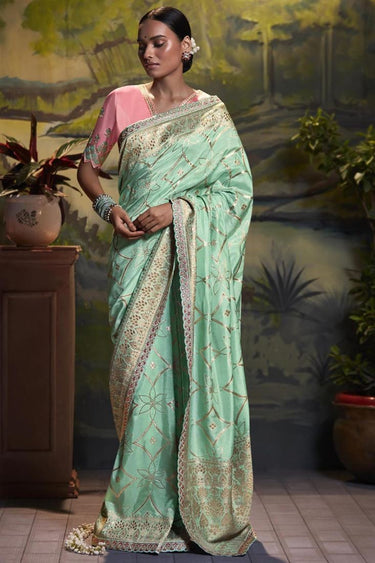 Sea Green Color Fancy Fabric Festival Wear Divine Saree