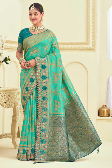 Sea Green Color Glamorous Weaving Designs Silk Saree