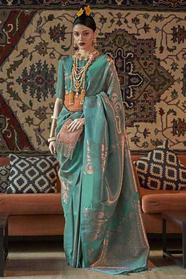 Sea Green Color Gorgeous Art Silk Weaving Designs Saree