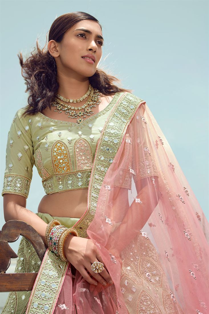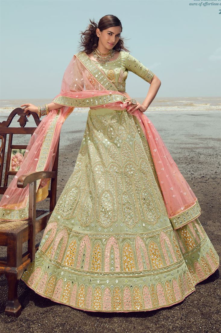 Sea Green Color Organza Fabric Astounding Embroidered Lehenga