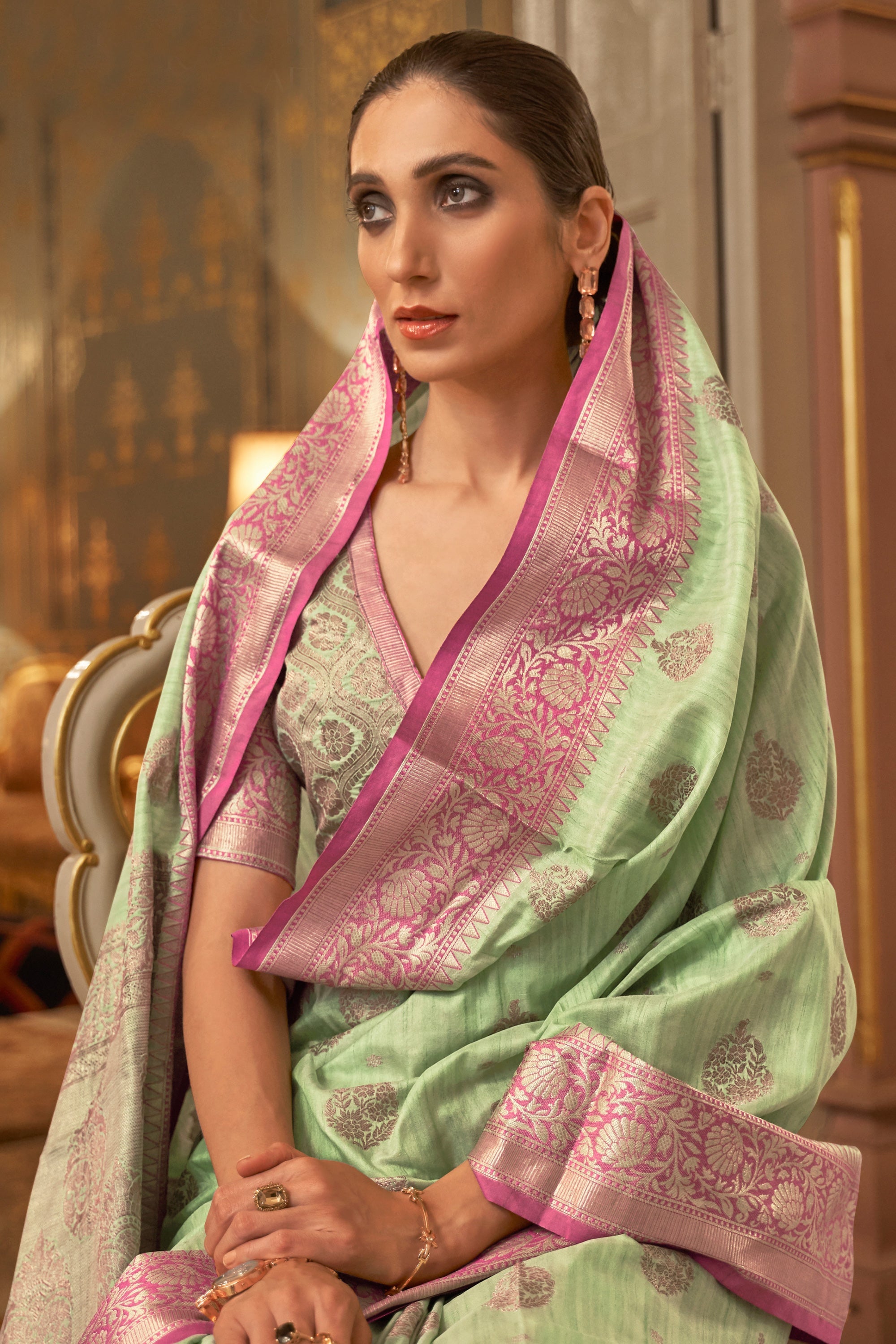 Sea Green Color Pleasant Handloom Weaving Silk Saree
