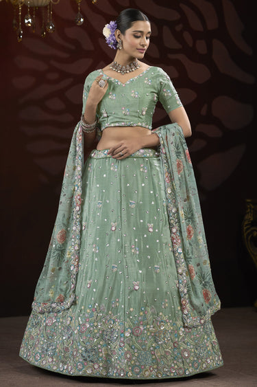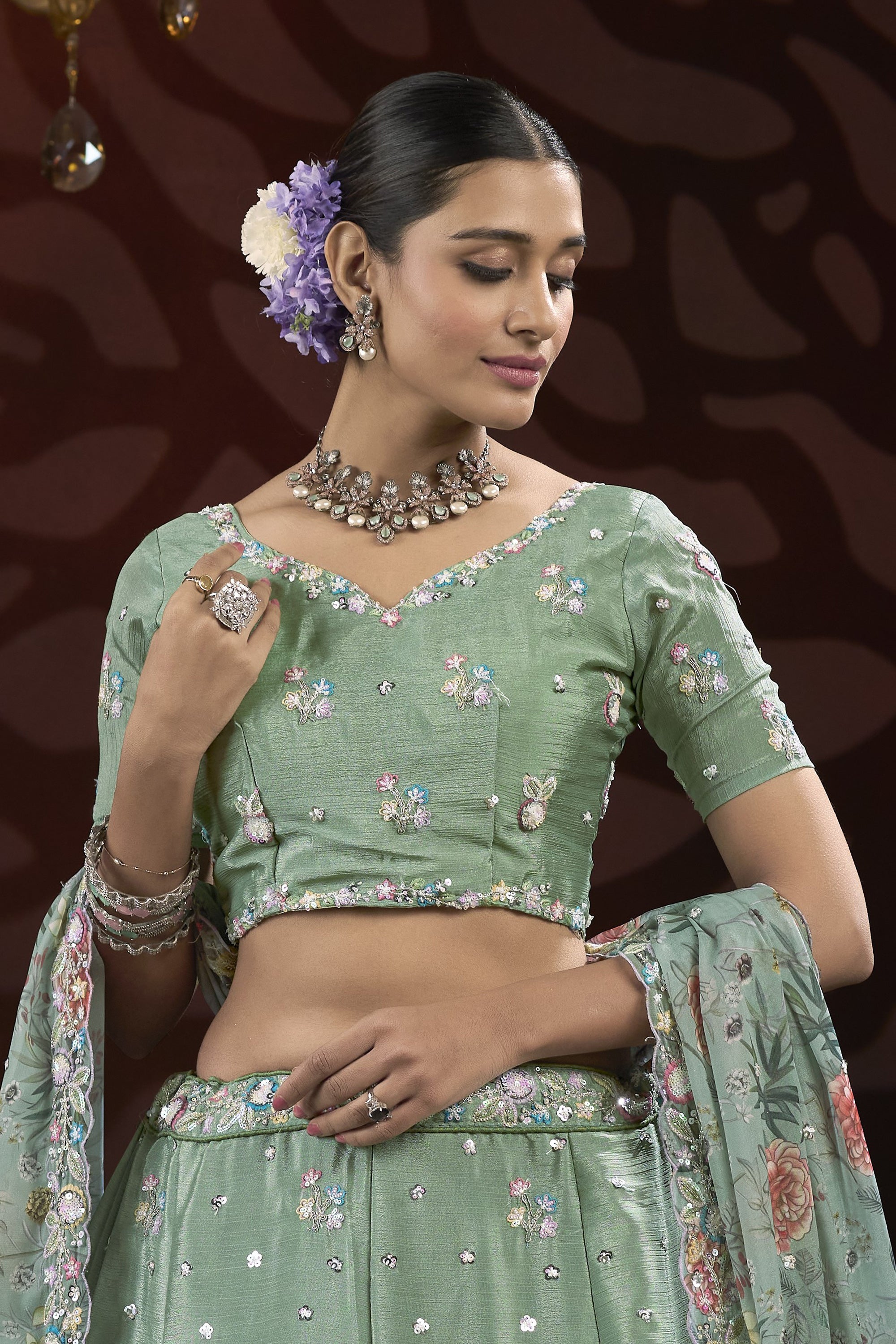 Sea Green Designer Sangeet Wear Lehenga Choli With Sequins Work Chinon Fabric