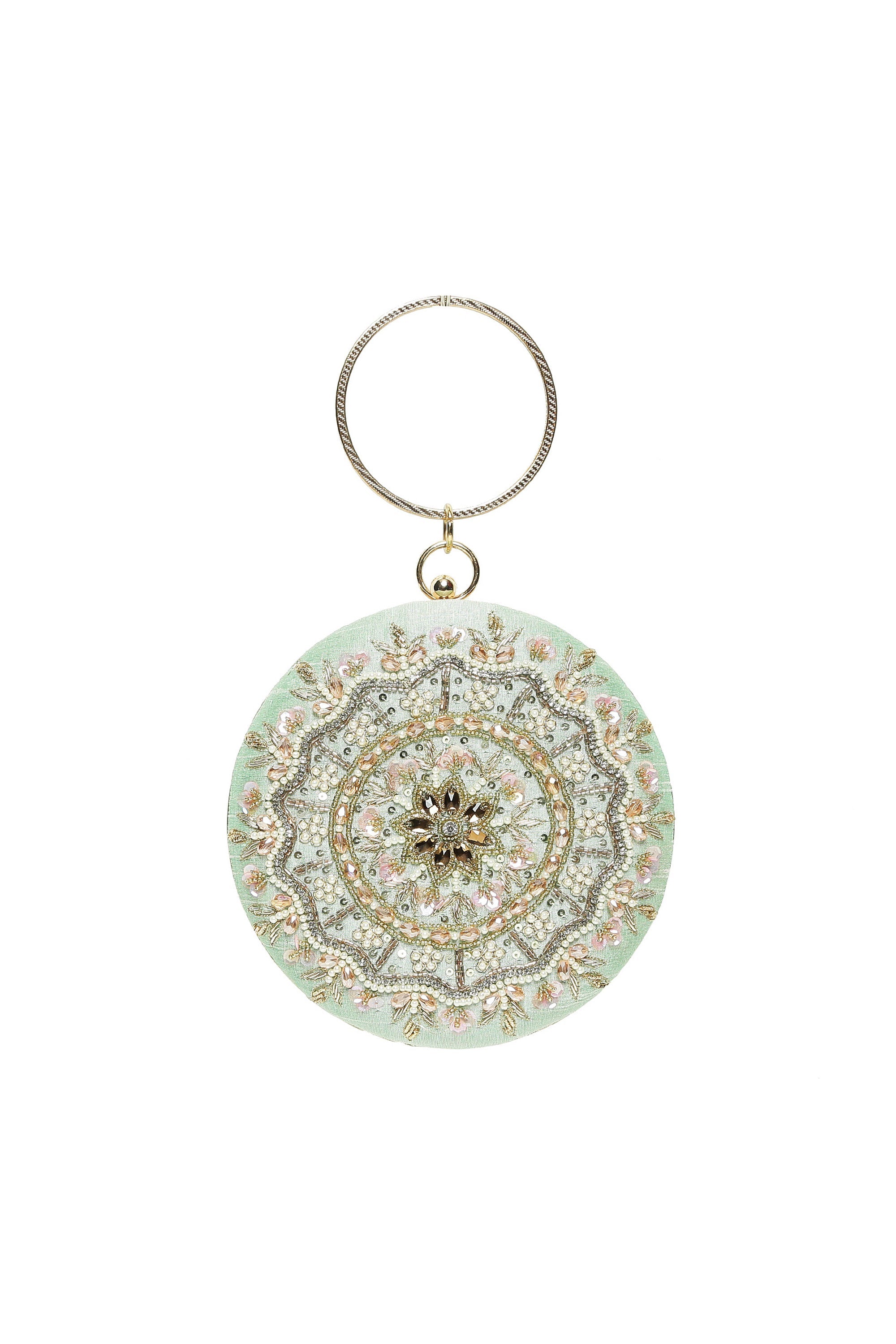 Sea Green Round Sequin Clutch Purse For Evening Party