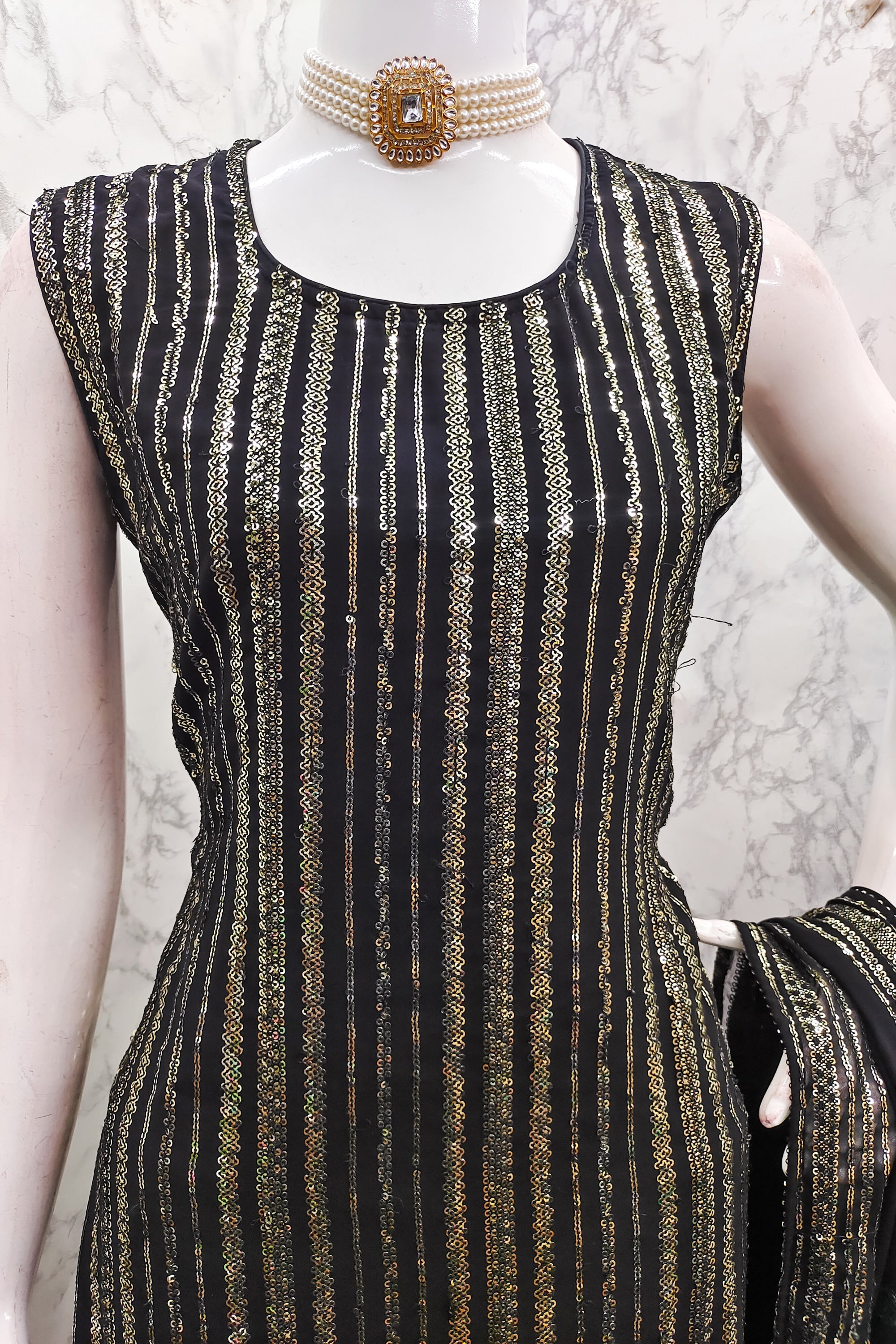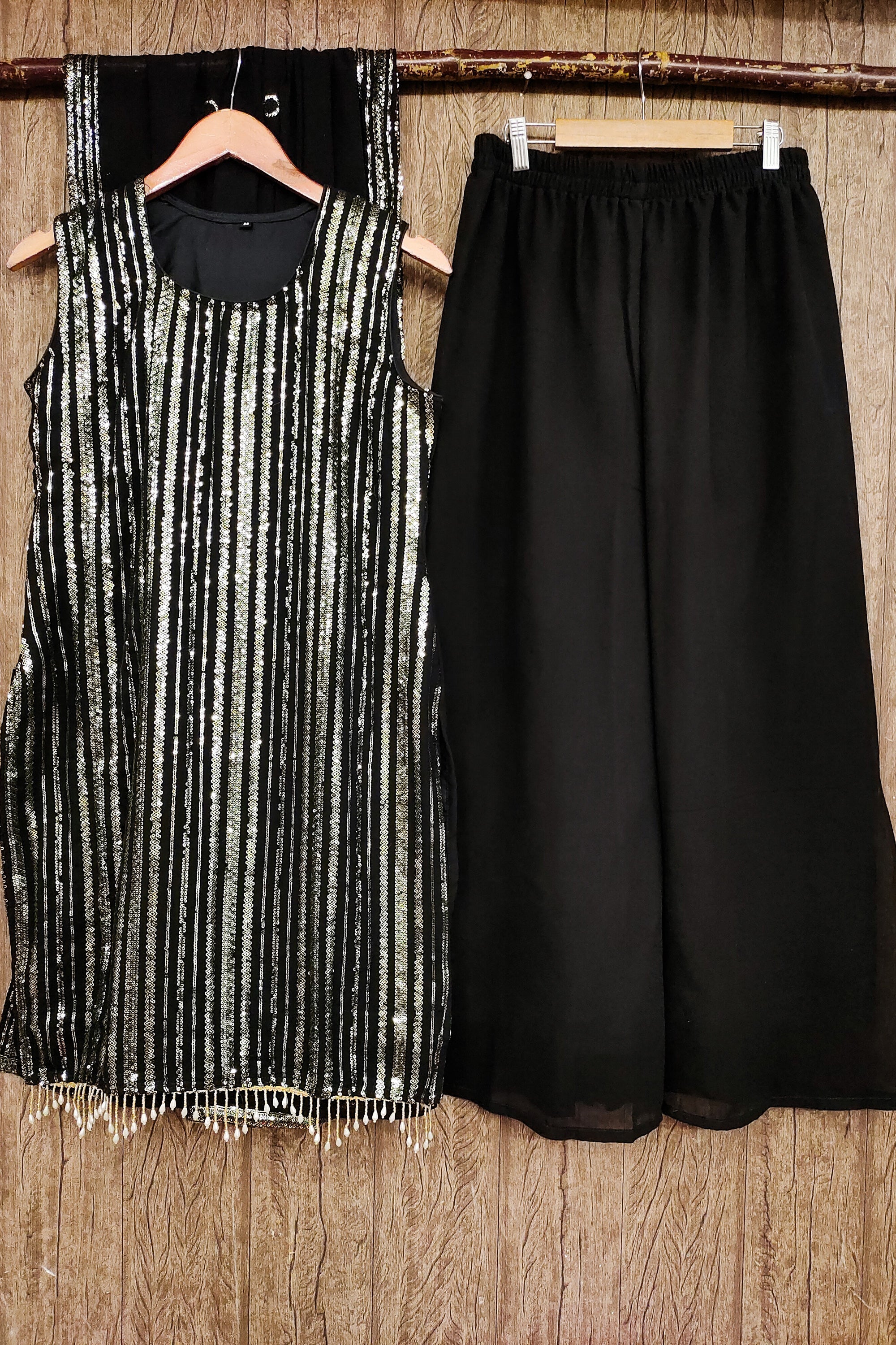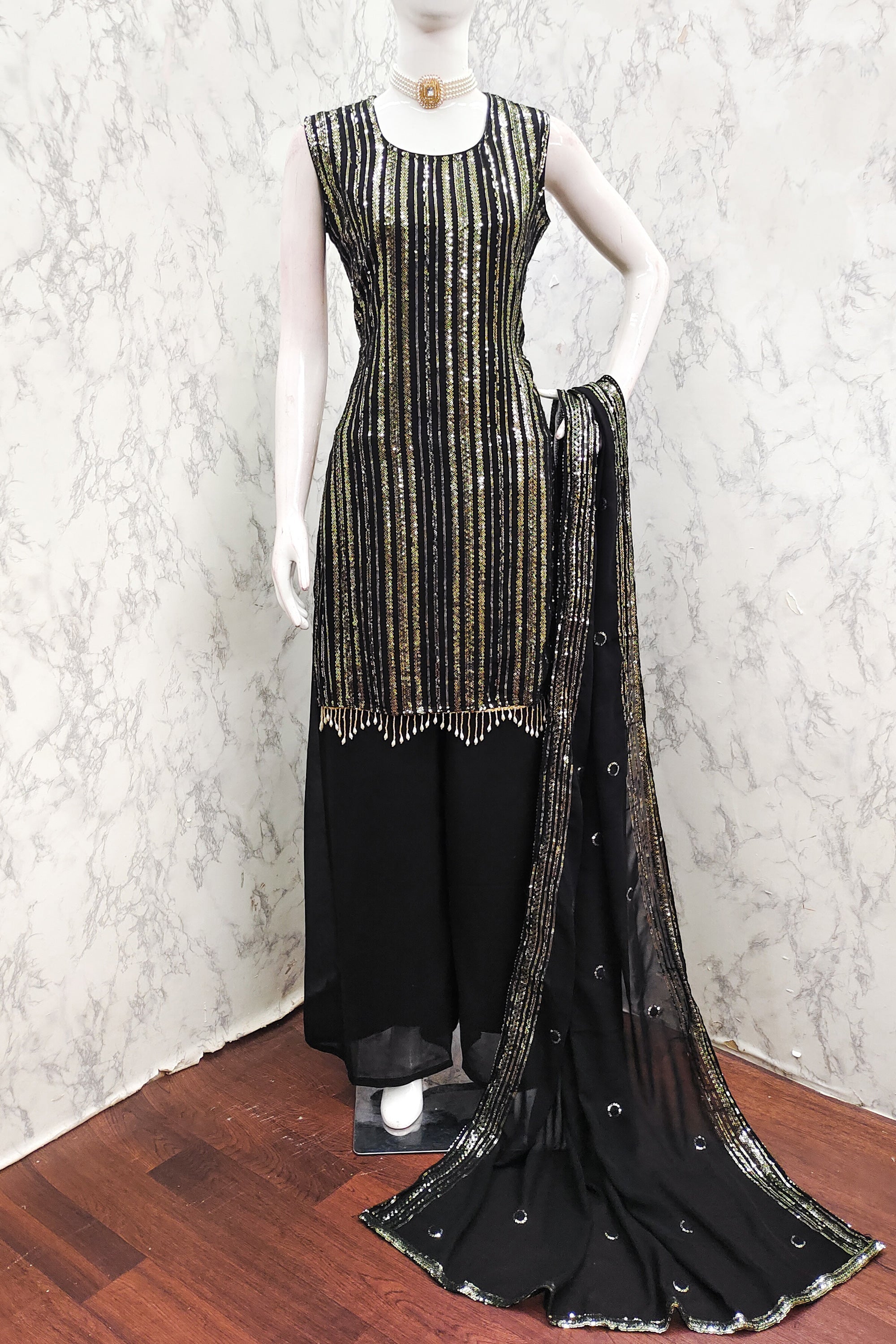 Sequins Work Black Readymade Palazzo Salwar Suit