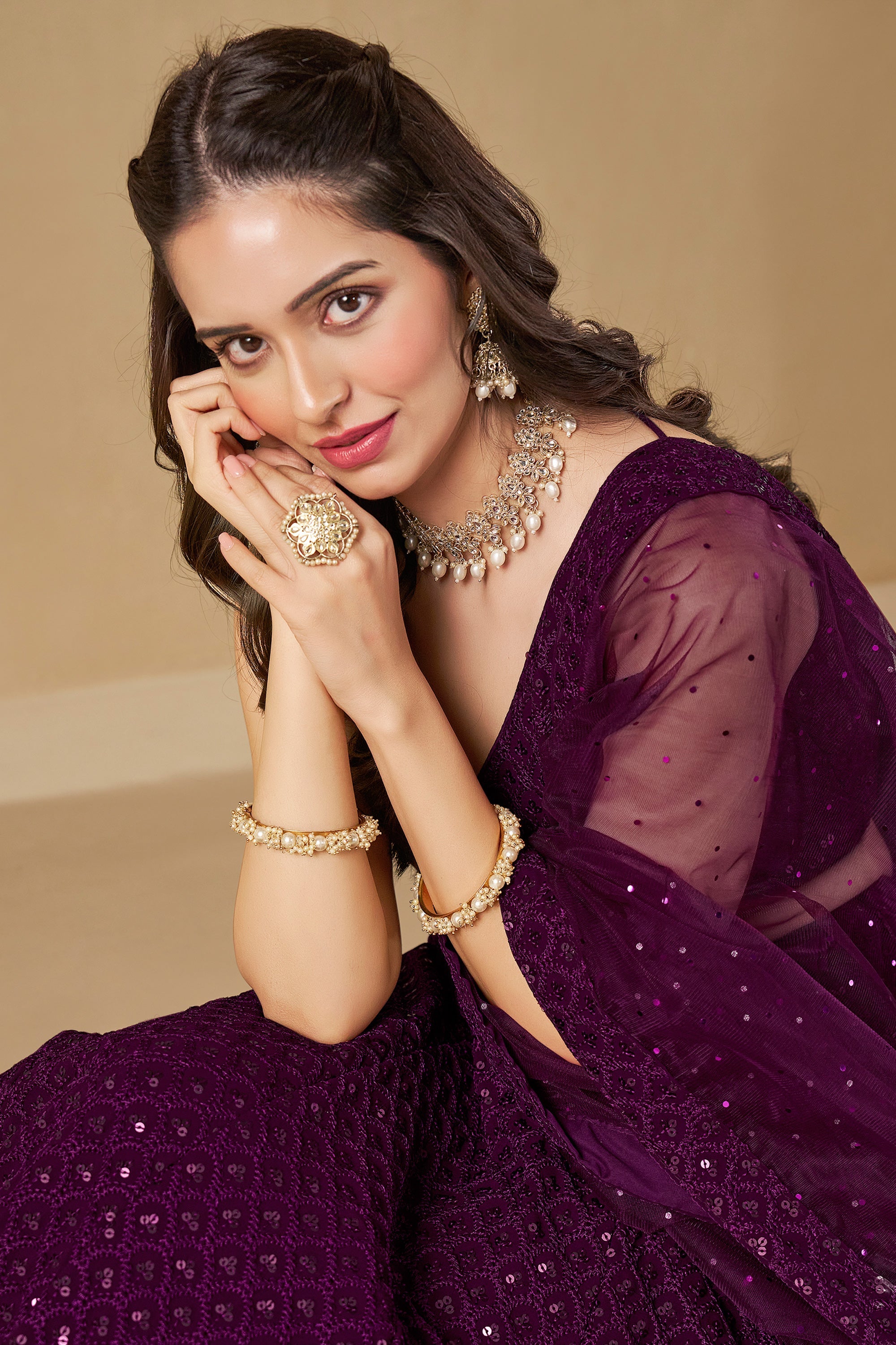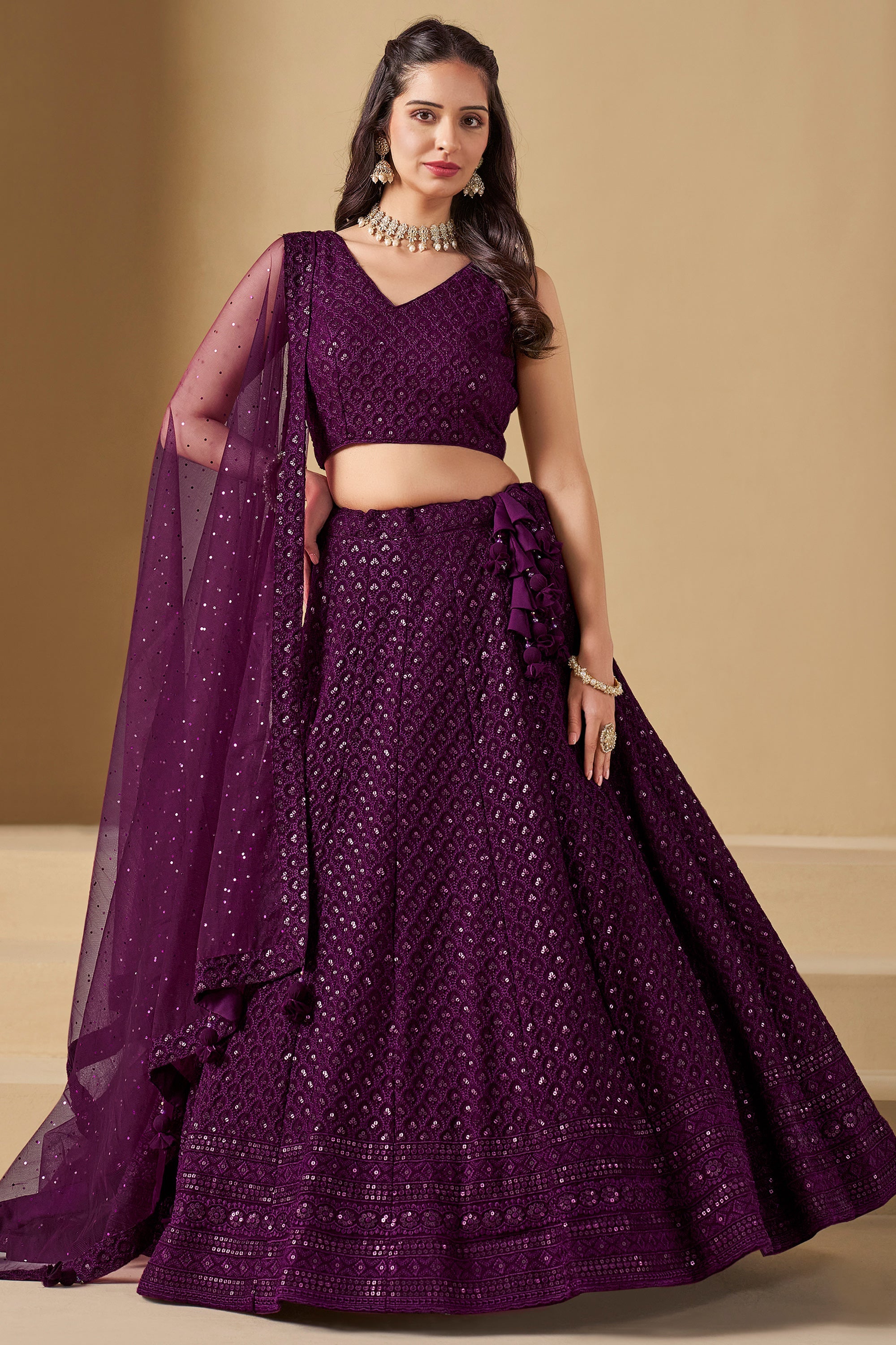 Sequins Work Georgette Fabric Designer Lehenga In Wine Color