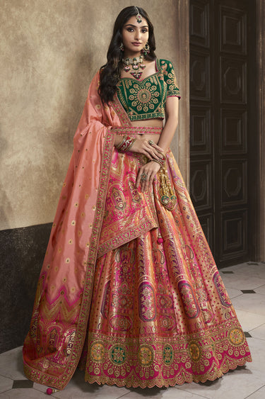 Sequins Work Glamorous Bridal Lehenga In Peach Color Silk Fabric