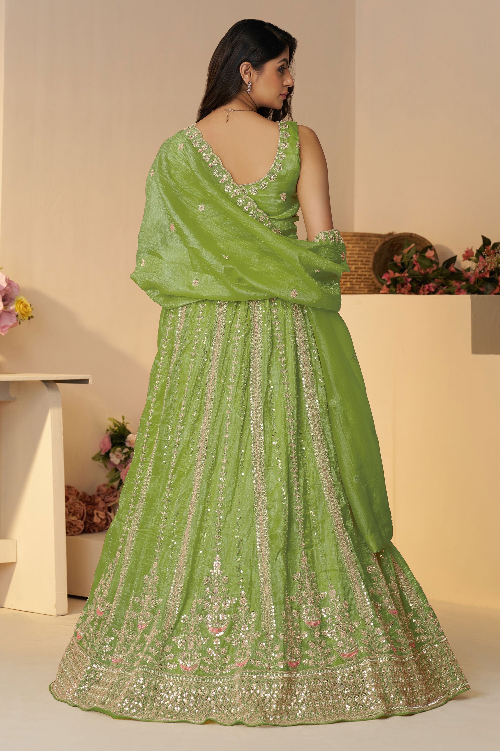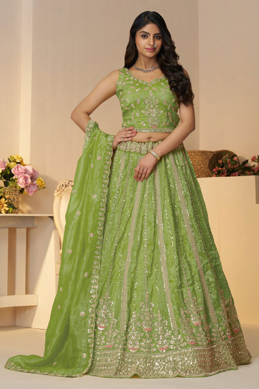 Sequins Work Green Designer 3 Piece Lehenga Choli In Fancy Fabric