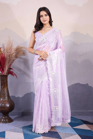 Sequins Work Lavender Designer Saree With Gorgeous Blouse