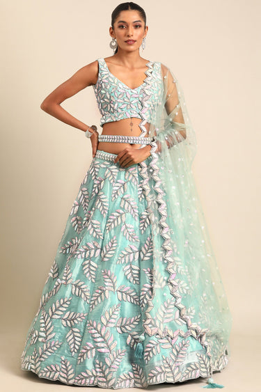 Sequins Work On Light Cyan Organza Fabric Occasion Wear Lehenga Choli