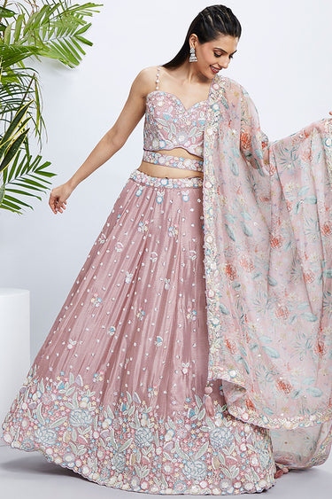 Sequins Work On Rose Gold Chiiffon Silk Designer Lehenga With Mesmerizing Blouse