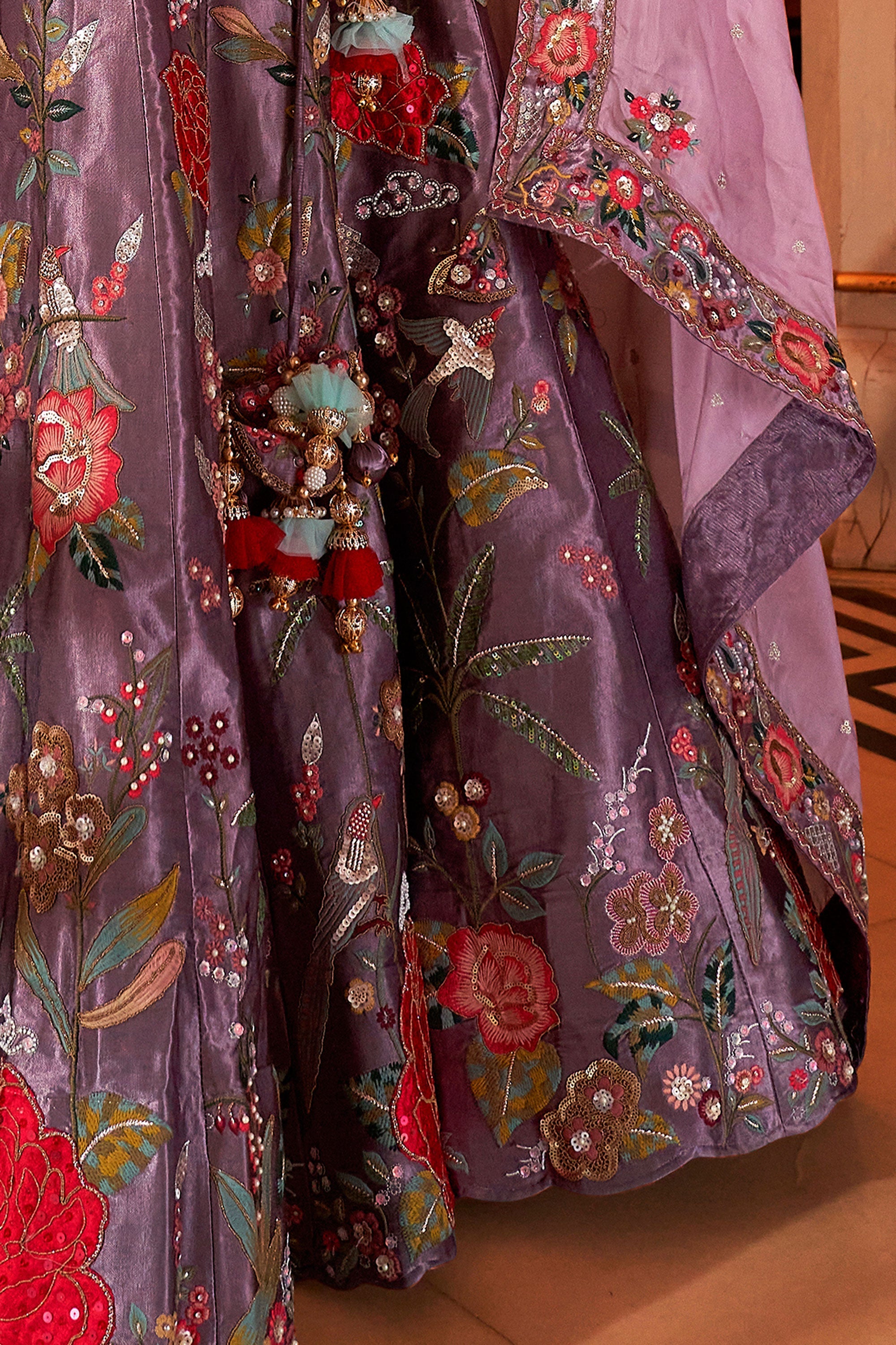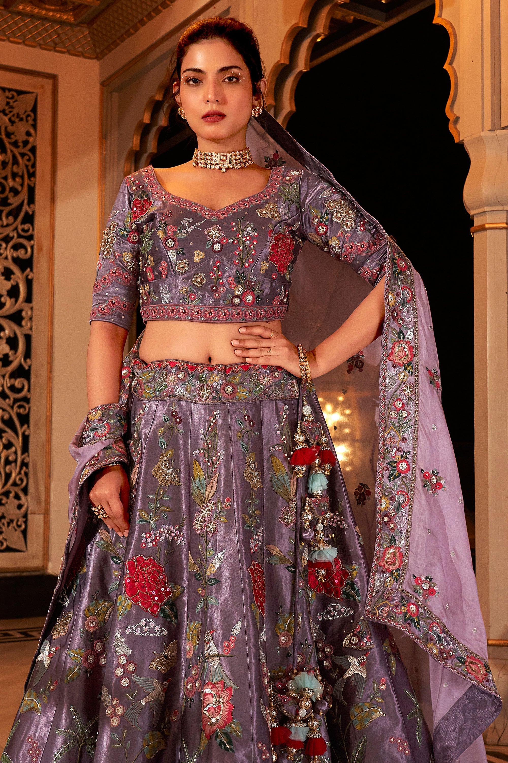 Sequins Work Purple Color Glorious Bridal Lehenga Choli In Satin Fabric