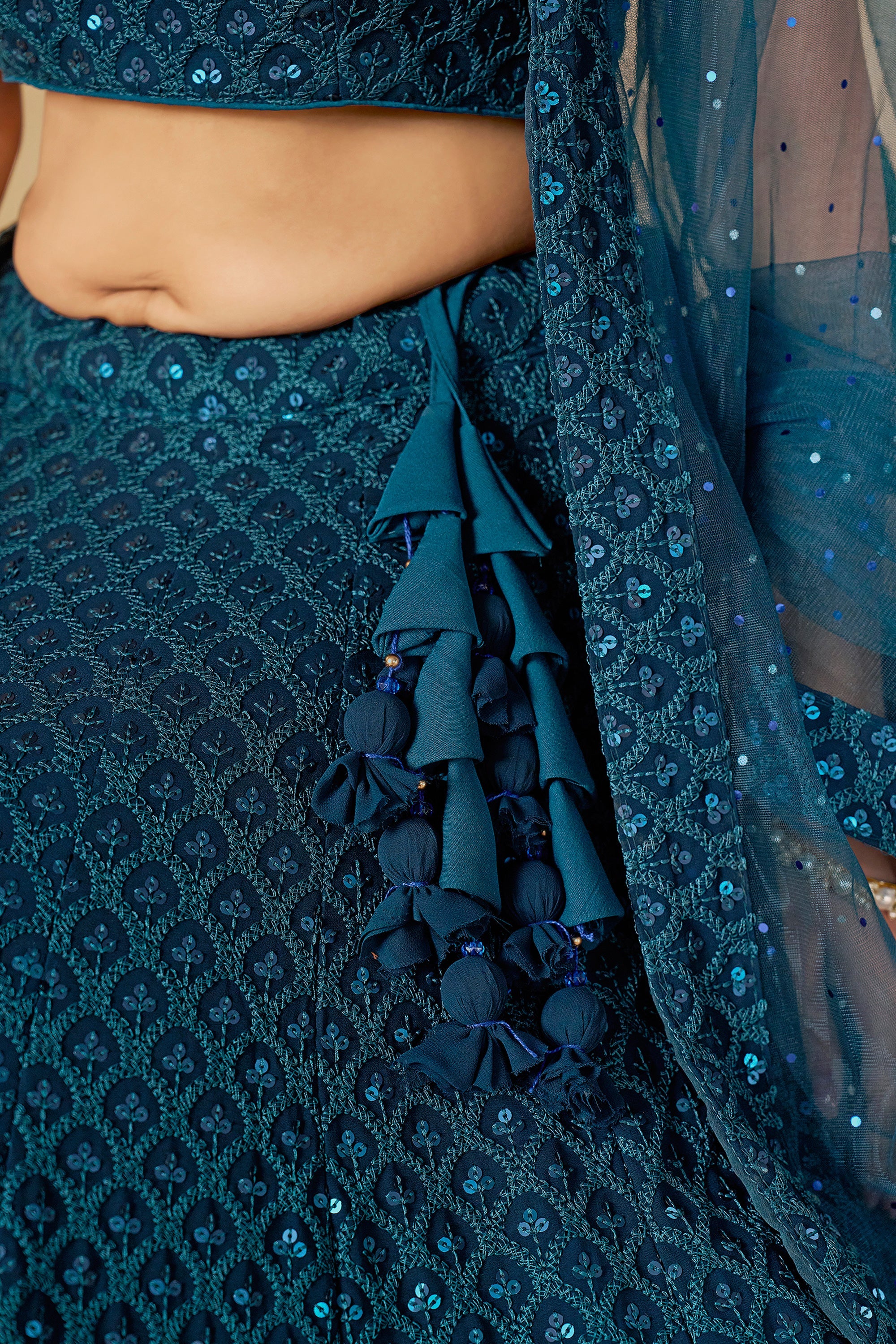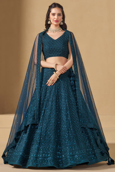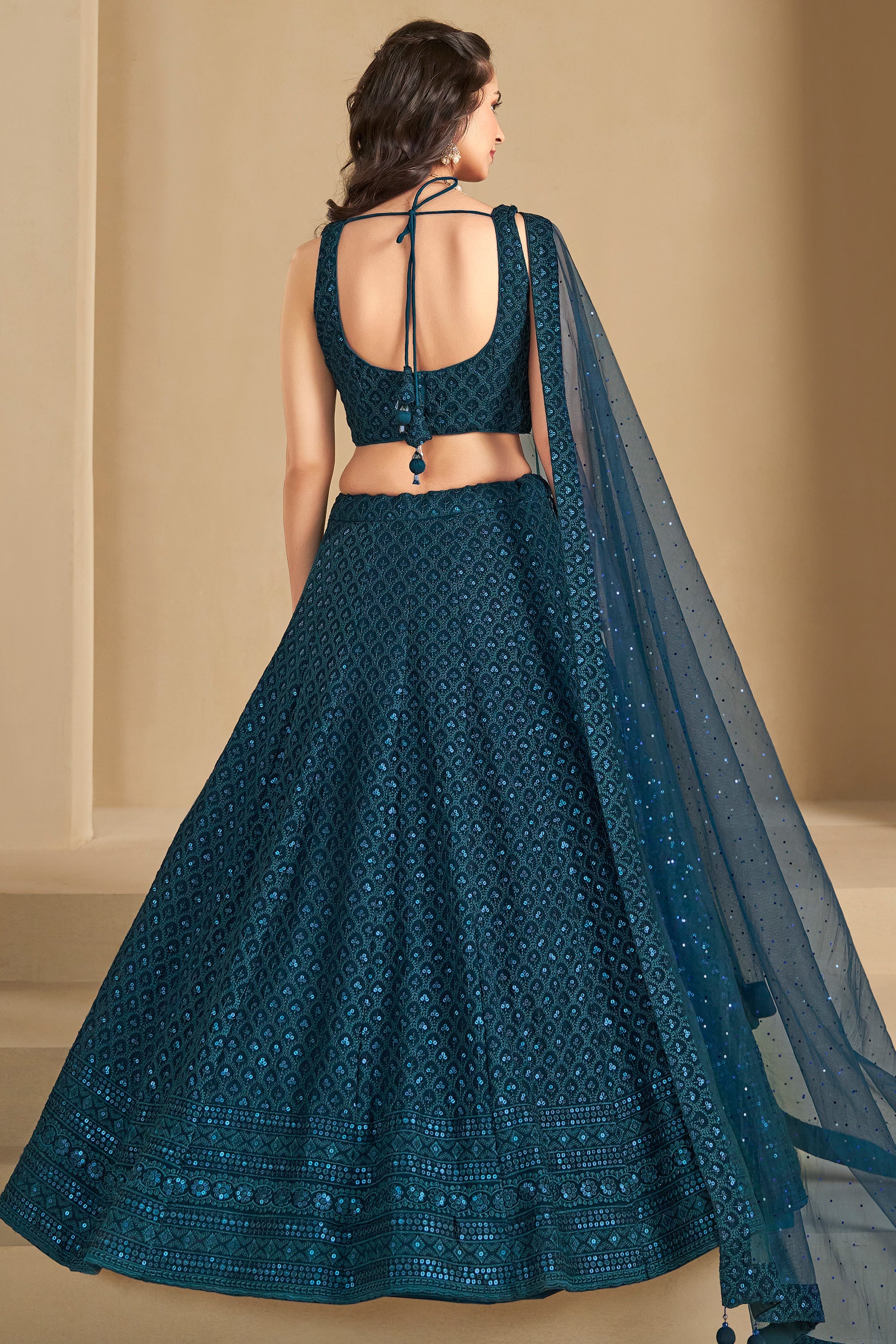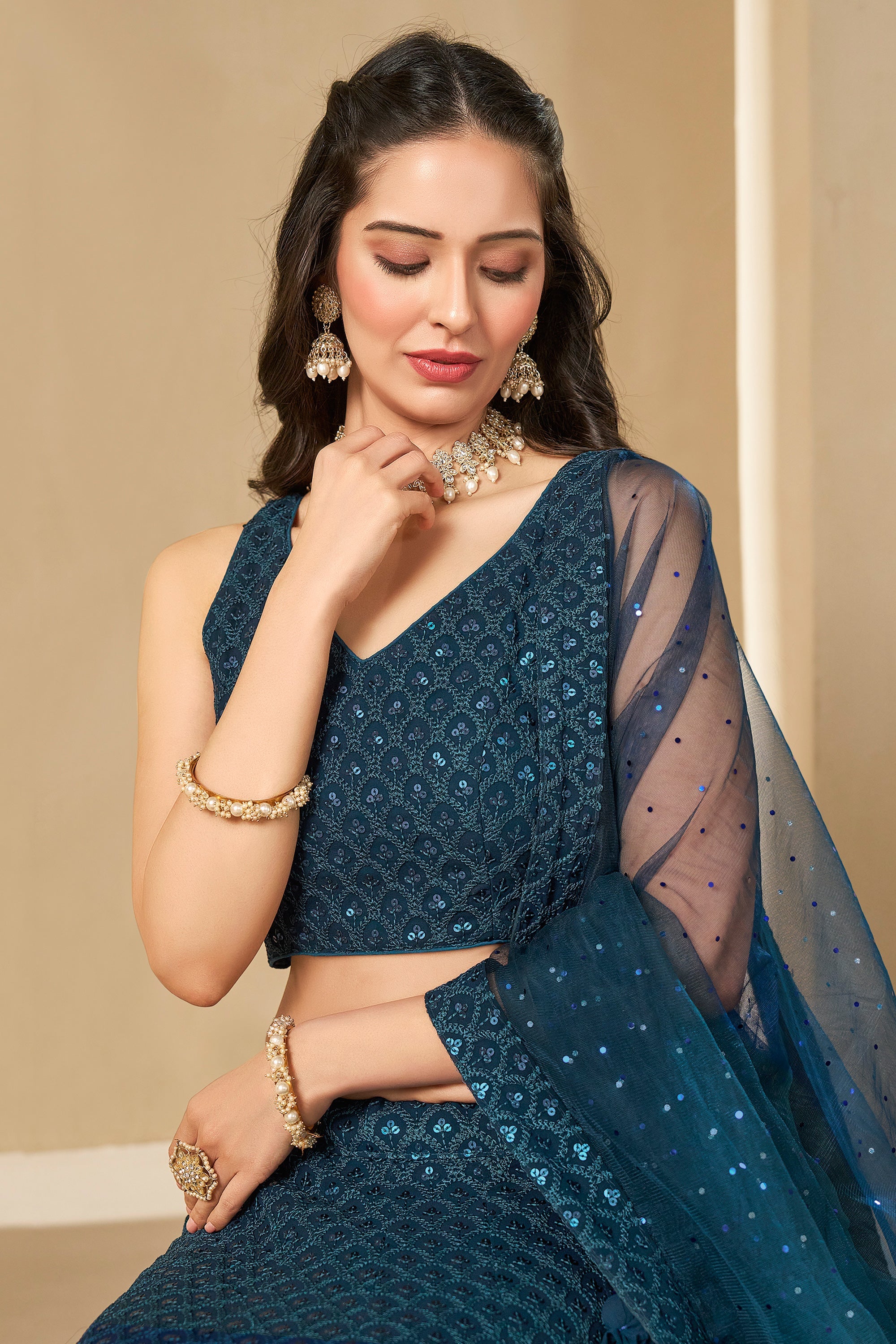 Sequins Work Wedding Wear Lehenga Choli In Blue Color