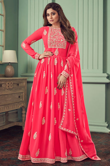 Shamita Shetty Pink Anarkali Salwar Kameez In Georgette Fabric