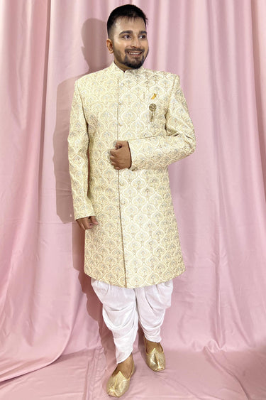 Silk Beige Color Wedding Wear Readymade Designer Men Indo Western