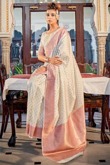 Silk Fabric Beige Color Weaving Work Festive Wear Trendy Saree