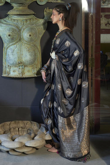 Silk Fabric Black Color Weaving Work Festive Wear Trendy Saree