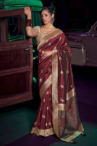 Silk Weaving Border Work Saree In Maroon Color