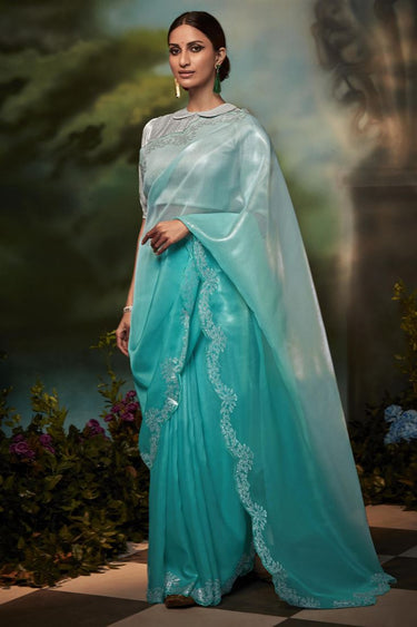 Sky Blue Color Party Style Fancy Work Charismatic Art Silk Saree