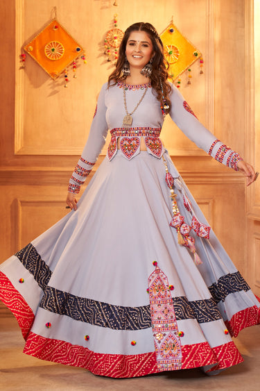 Sky Blue Color Viscose Rayon Fabric Embroidered Navratri Special Lehenga Choli