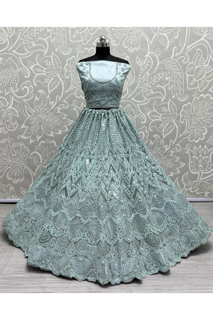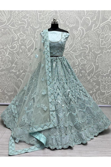 Sky Blue Color Wedding Wear Net Fabric Charismatic Bridal Lehenga