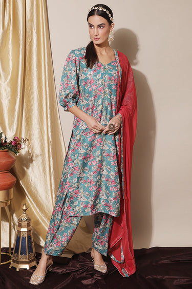 Sky Blue Muslin Printed Daily Wear Salwar Suit