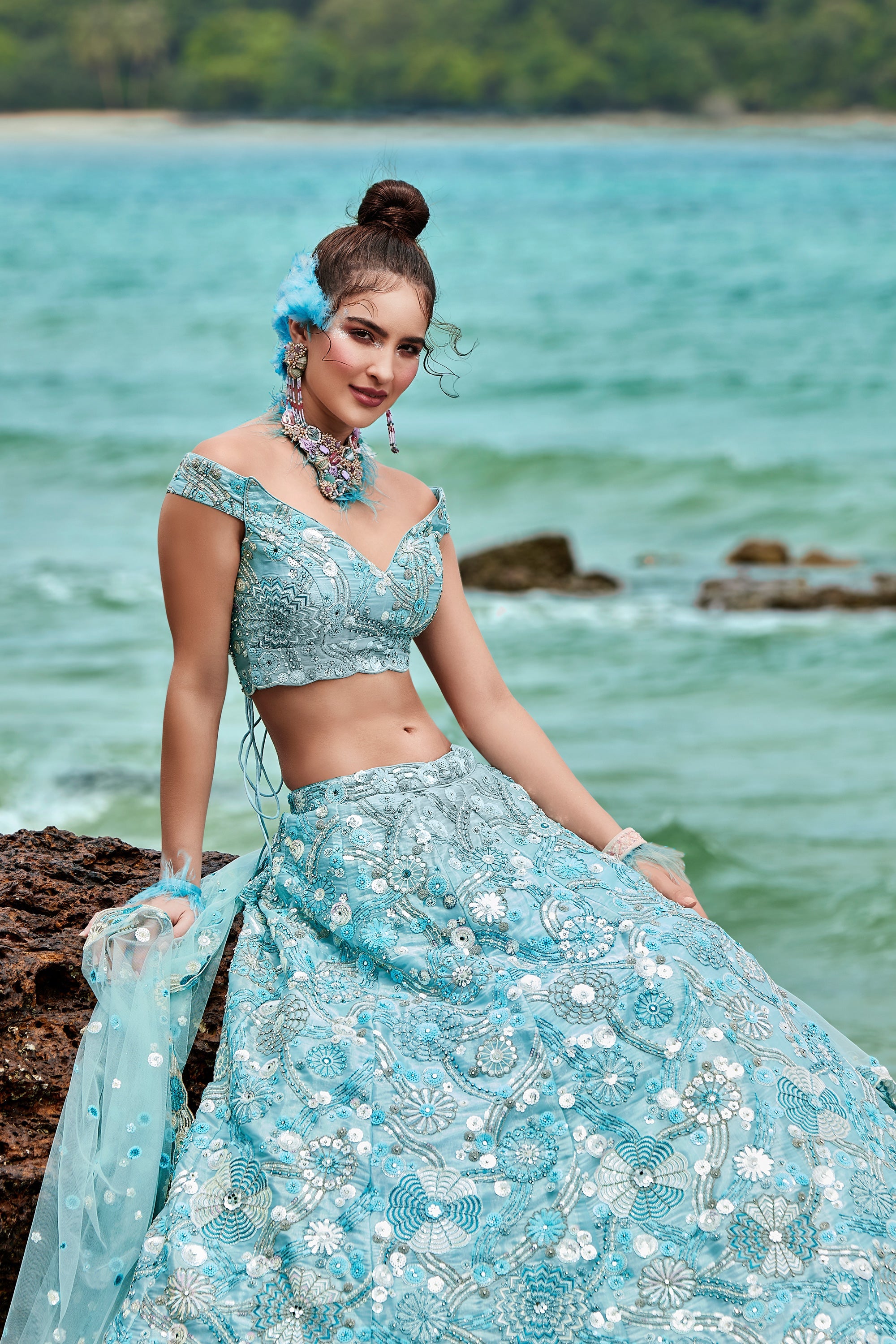 Sky Blue Organza Sequins Embroidery Lehenga Choli