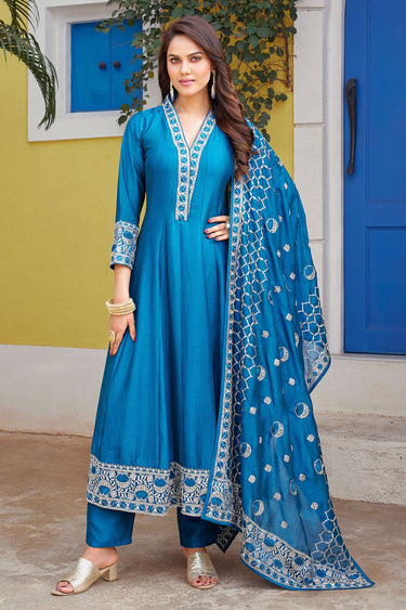 Transform your look with this exquisite Sky Blue Silk Indo Western outfit. Designed for elegance, the ensemble features a front-cut kurta, sleek pants, and a matching dupatta. The rich silk fabric offers a smooth, luxurious feel, perfect for special occasions and celebrations. This outfit blends traditional charm with contemporary style, ensuring you stand out in any crowd. Elevate your ethnic wardrobe with this stunning set that promises comfort without compromising on style.