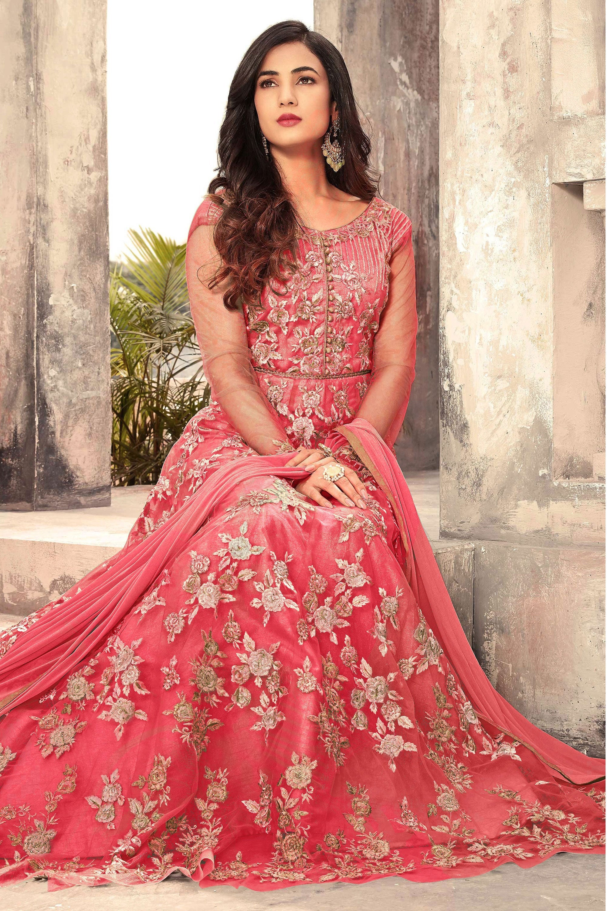 Sonal Chauhan Pink Embroidered Georgette Anarkali Salwar Suit