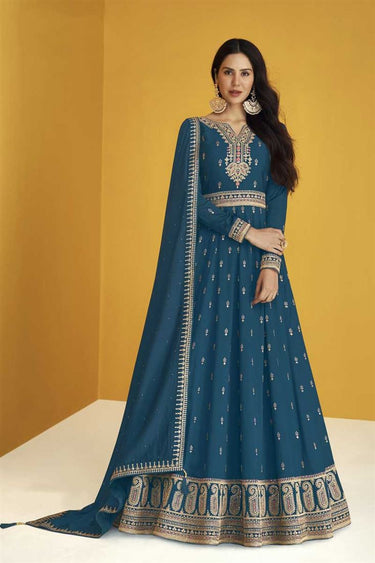 Sonam Bajwa Blue Color Georgette Fabric Tempting Festive Look Anarkali Suit