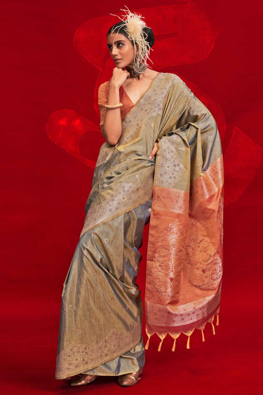 Soothing Art Silk Handloom Weaving Saree In Grey Color