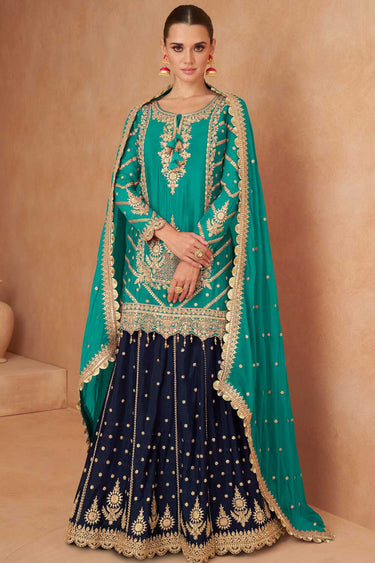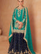 Soothing Navy Blue Color Chinon Fabric Readymade Sharara Top Lehenga