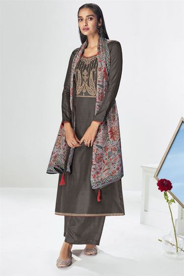 Striking Art Silk Fabric Dark Beige Color Embroidered Palazzo Salwar Suit