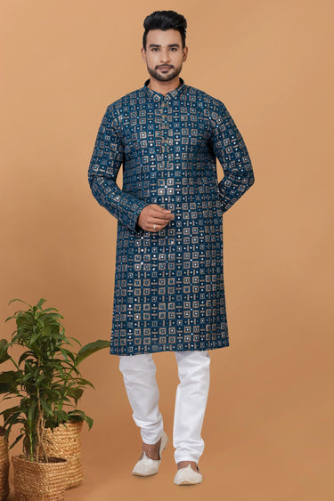 Stunning Georgette Fabric Sequins Embroidery Readymade Kurta Pyjama For Men