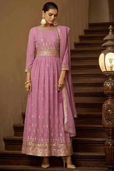 Stunning Pink Color Sequins Work Georgette Anarkali Suit