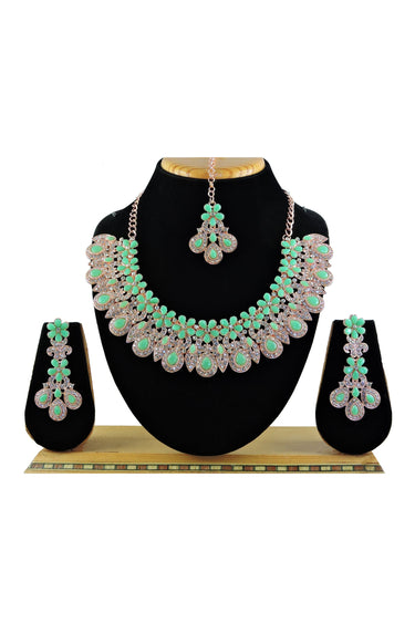 Stunning Sea Green Color Alloy Necklace with Earrings and Mang Tikka