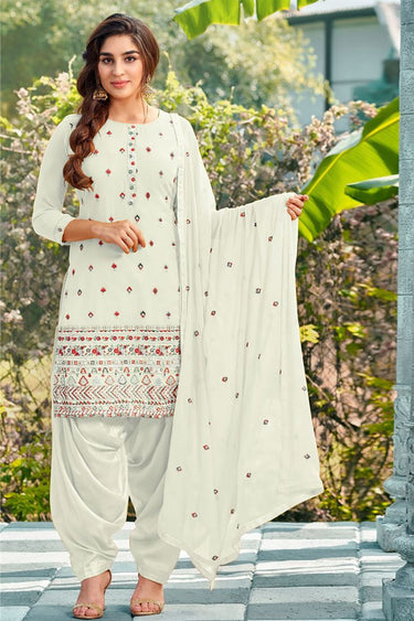 Stunning White Color Georgette Fabric Embroidered Patiala Suit