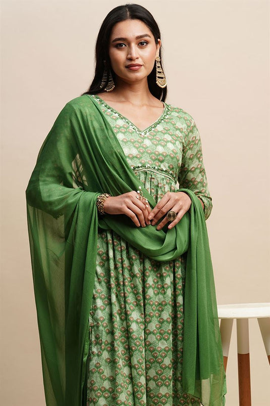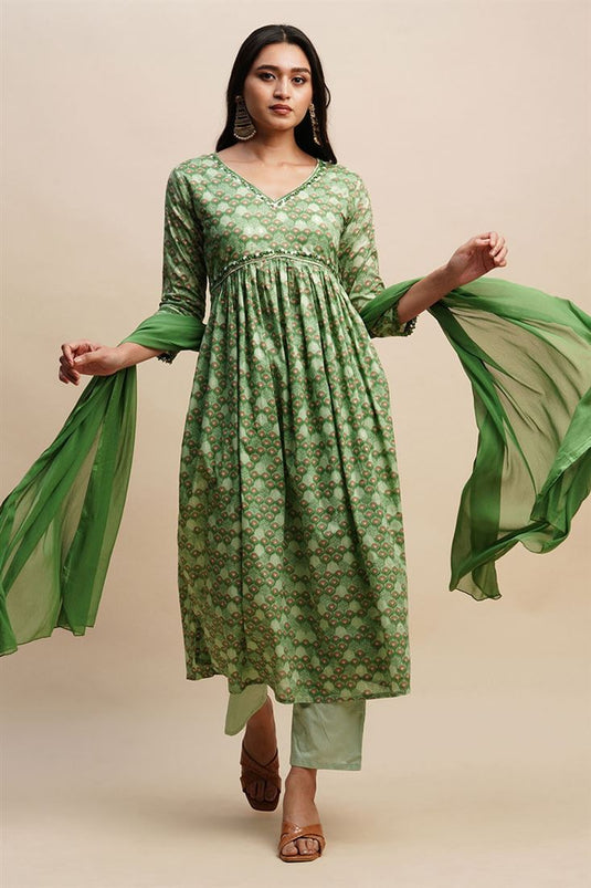 Stylish Printed Cotton Green Color Salwar Suit Perfect For Everyday Casual Outfit