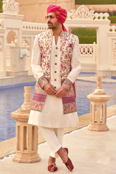 Stylish White Color Art Silk Fabric Readymade Indo Western For Men