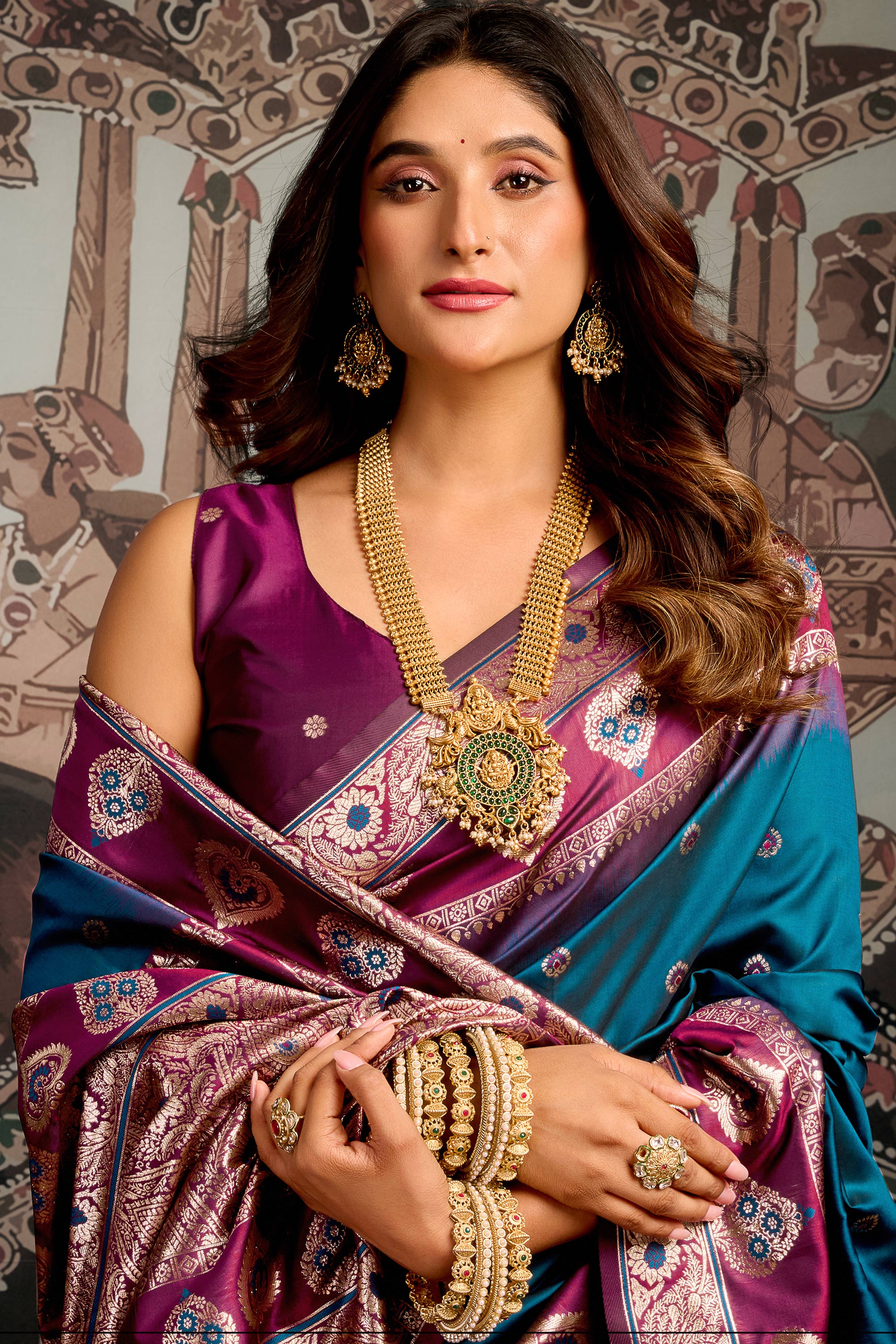 Teal Art Silk Weaving Work Saree For Festive Wear
