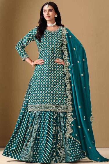 Teal Color Art Silk Readymade Beautiful Sharara Top Lehenga