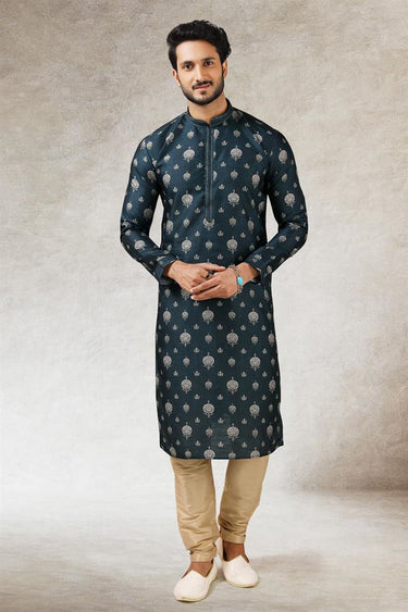 Teal Color Ethnic Look Lavish Art Silk Kurta Pyjama