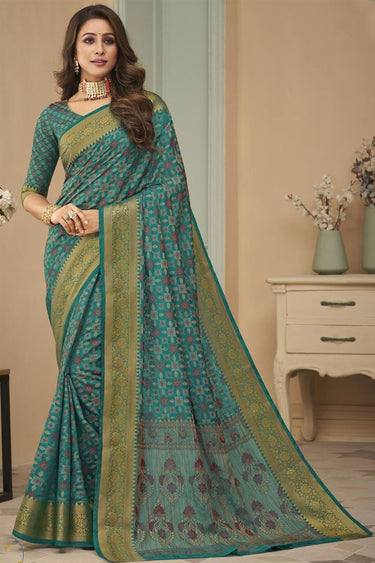 Teal Color Festival Wear Art Silk Fabric Weaving Work Pleasant Saree