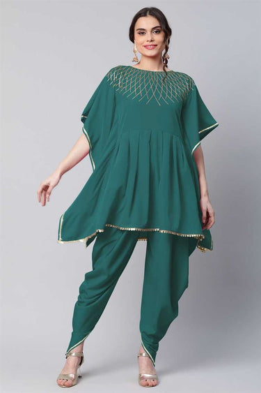Teal Color Printed Crepe Fabric Attractive Kurti With Dhoti Pant