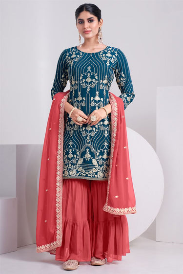 Teal Color Supreme Festive Look Georgette Palazzo Suit