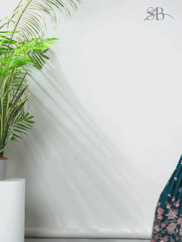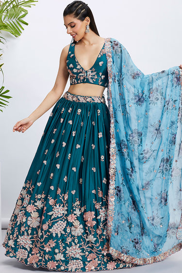 Teal Georgette Wedding Wear 3 Piece Lehenga Choli With Sequins Work
