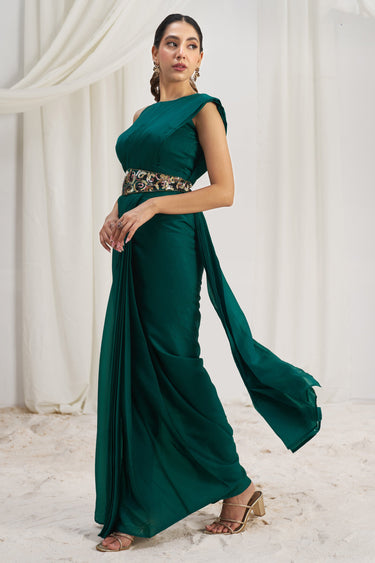 Teal Green One Minute Organza Saree